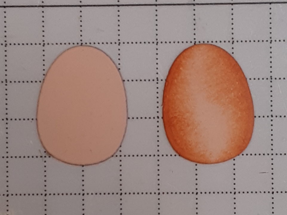 I cut the eggs from a variety of cardstocks: Fresh Freesia, Petal Pink, Lemon Lolly, Balmy Blue, Bubble Bath, Pretty in Pink, and Soft Sea Foam. Since the die set only has one egg die included, I had to cut it seven times. Below is a close-up picture of a before ink blending and after. The ink blending with sponge daubers helps add dimension to the egg. I applied the ink heavier to the edges and lighter closer to the middle. The inks I used to shade my eggs: Fresh Freesia, Petal Pink, Daffodil Delight, Bubble Bath, Pretty in Pink, and Soft Sea Foam.
