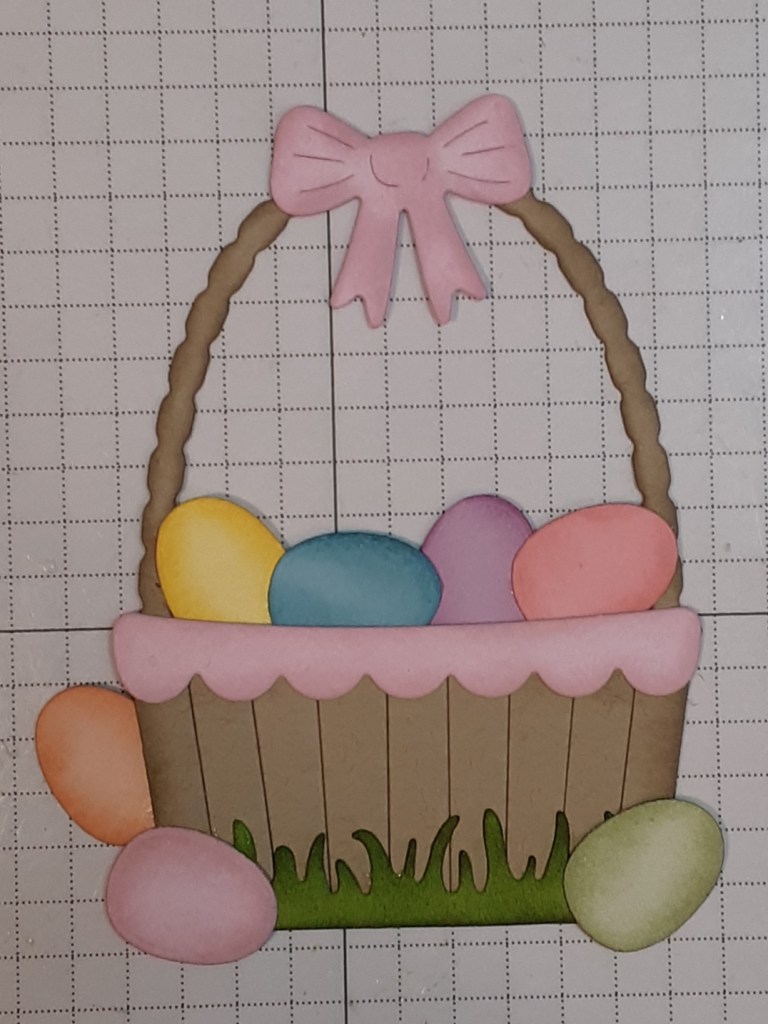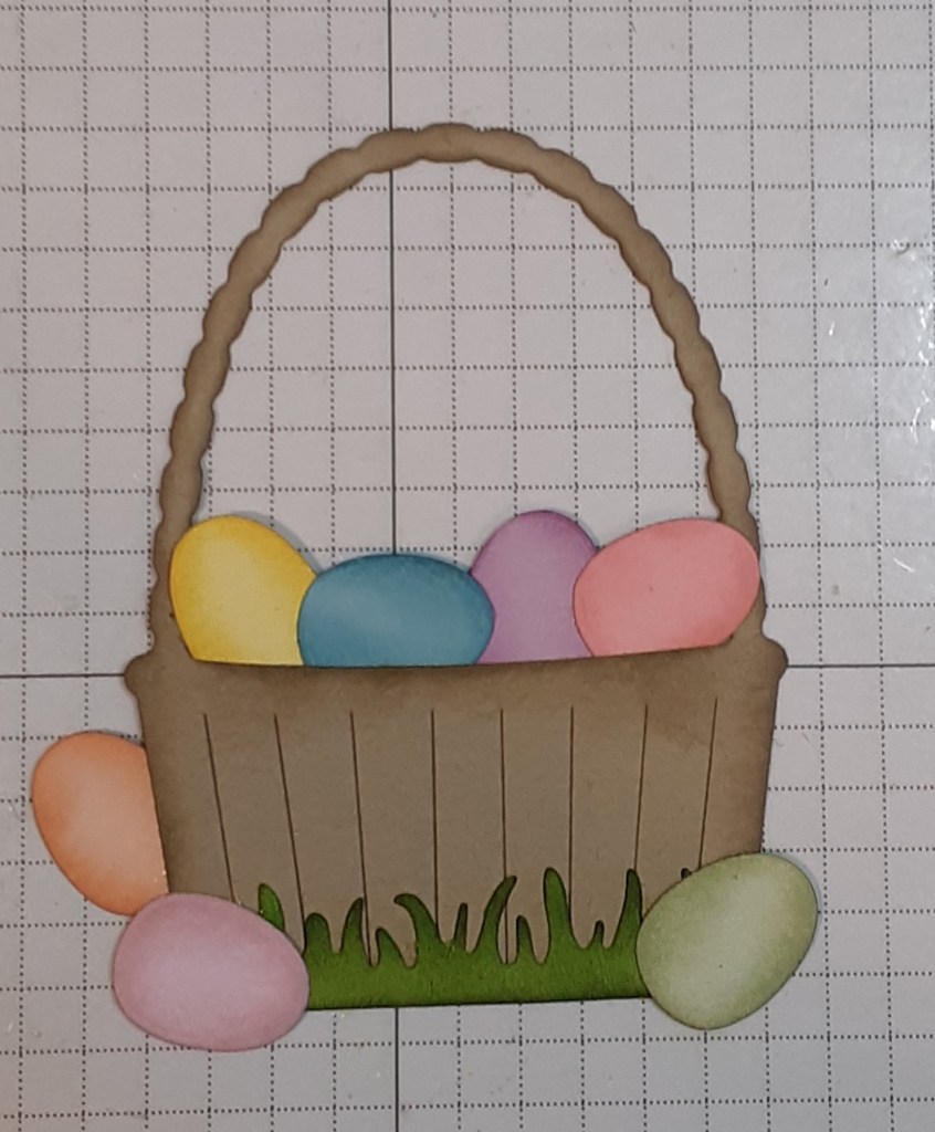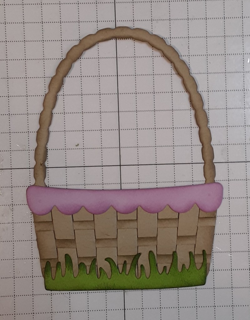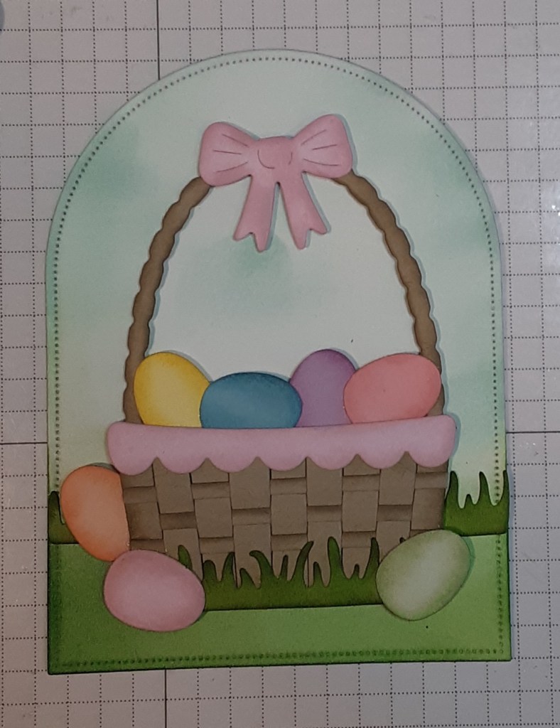 I added the inked bow to the basket. (At this point, I still hadn’t realized I had forgotten to add the strips to the basket.)