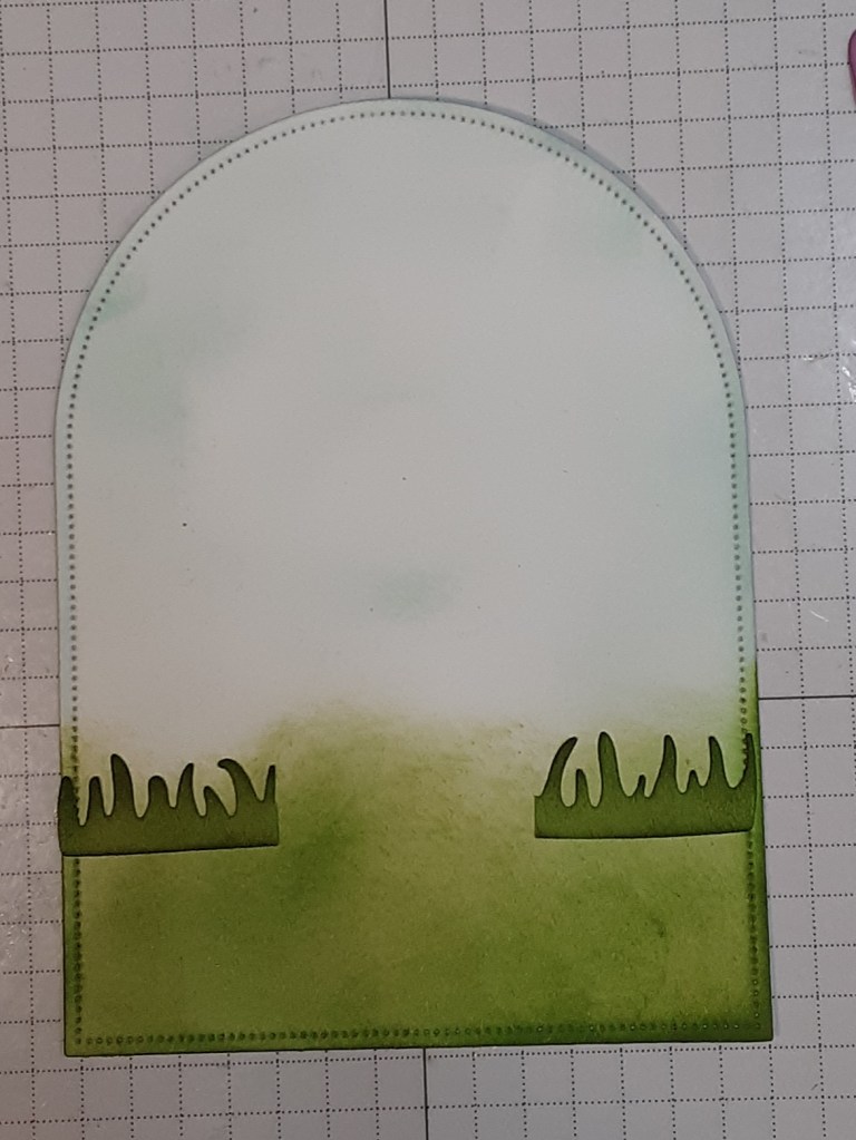 I cut two of the grass from Granny Apple Green cardstock. I ink blended the edges with Granny Apple Green ink and a sponge dauber.