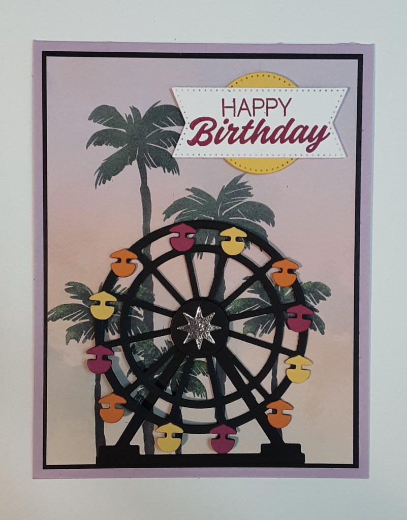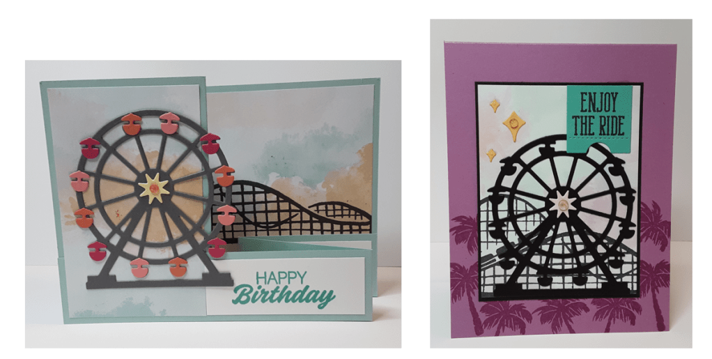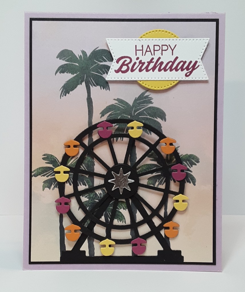 I was watching a crafter’s video the other day and she made spinner cards. I have made spinner cards before and hadn’t really thought about them for a while. I decided to give it a try. I went through my stash of supplies and came across the Ferris wheel in Boardwalk Fun. Perfect! I could make the Ferris wheel spin, because isn’t that what they do? It took me a minute (hour or so) to figure out how to make the mechanism work for me. I hope you enjoy this tutorial and give it a shot. Marilyn here with another card.
