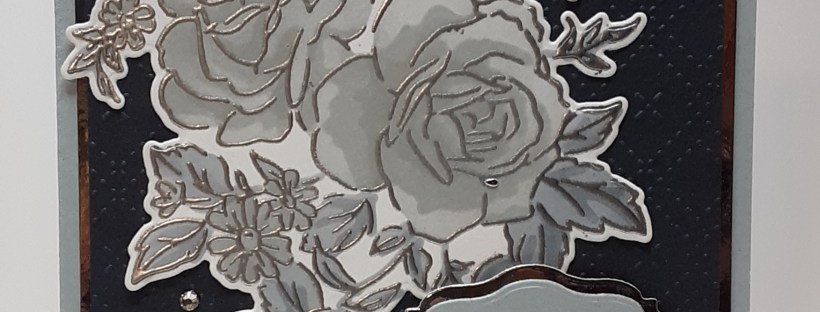 Today’s card uses a bundle that I have used before at least twice, last April and this past January. It comes with a set of stencils that make coloring easy. I like to heat emboss the image and then stencil on the ink. I switched it up a little today with the silver embossing powder instead of gold. You could also just use black ink. When I started creating this card, I thought I would go for a three in one technique but decided the image wasn’t large enough to split into three cards. I also love the look of monochromatic cards and thought I would try the Cloud Cover and Secret Sea combo. So, I hope you enjoy today’s card. The photo really doesn’t do it justice (my kids tell me to upgrade my phone to get better pics!), but I haven’t gotten around to it yet.