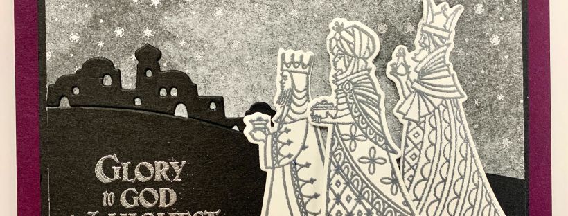 This stunning card features the intricate Kings from the Great Tidings Bundle. This card starts with a 5.5" x 8.5" piece of Blackberry Bliss Cardstock. I cut a 5" x 3.75" piece of Basic Black Cardstock. I matted a piece of 4-7/8" x 3" piece of Peaceful Place DSP. I cut out the town skyline … Continue reading 3 Kings Christmas Card
