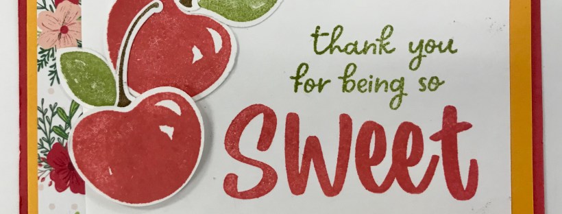 This SWEET card starts with a 8.5" x 5.5" piece of Cherry Cobbler cardstock. This card features the Sweetest Cherries Bundle. I adhered a 5.25" x 4" piece of Mango Melody cardstock front and center to the card. I added a piece of 3" x 3.75" floral DSP from the Tea Boutique DSP to the … Continue reading Simple & Sweet Card