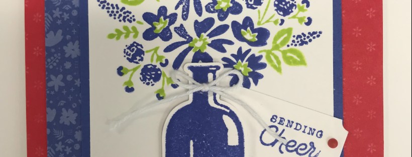 This fun card features some of the new In Colors!! The base of this card is the Parakeet Party Notecard from the Tea Boutique Cards and Envelopes. The matching envelopes are so pretty. These are a hidden treasure from the catalog!! Next I cut a 1 1/4" x 4 3/4" Starry Sky DSP for the … Continue reading Bottled Happiness Card