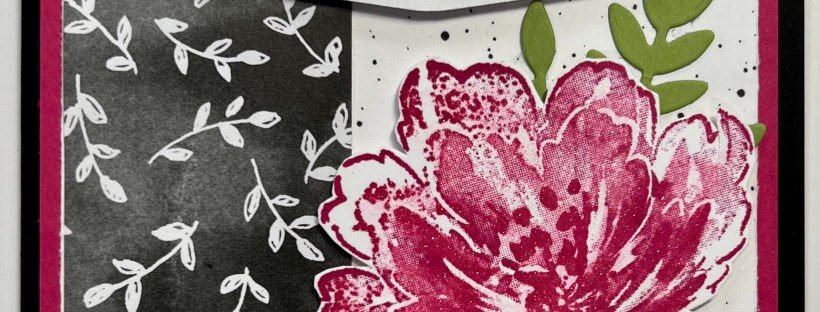 The contrast of the black and white makes this card so pretty and really helps the Melon Mambo pop! It was made by my good friend Gigi Parido. The card starts with a 8.5" x 5.5" piece of Basic Black Cardstock. Next, I cut a piece of 4" x 5.25" Melon Mambo Cardstock for the … Continue reading Melon Mambo Flowing Flower Birthday Card