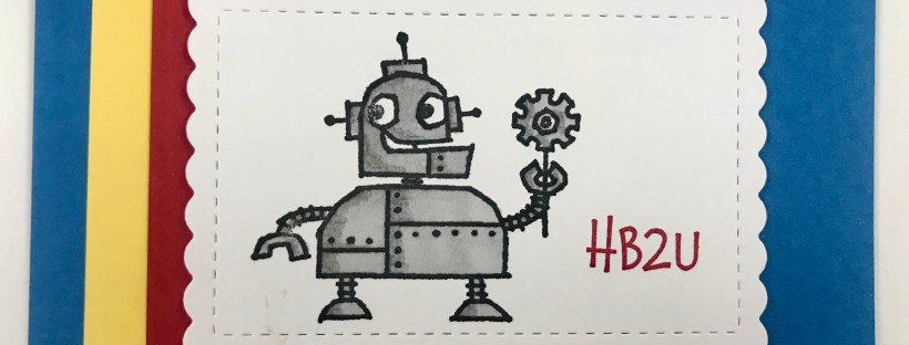 The Nuts & Bolts stamp set makes super cute kids cards! For this card, I stamped the robot in Black Momento Ink on Whisper White cardstock. I stamped the "HB2U" greeting in Real Red Ink next to the robot and used my light and dark Smoky Slate Stampin' Blends to color him in. I cut … Continue reading Simple Kid’s Birthday Card