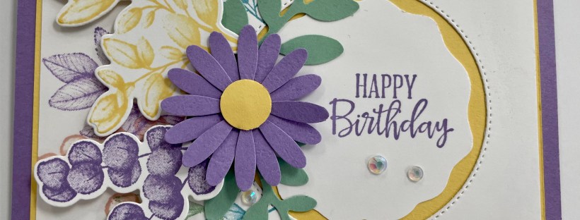 This impressive card is perfect for commemorating a spring birthday and can also be used for a Mother's Day Card! This card starts with a 5.5" x 8.5" piece of Highland Heather Cardstock. I used my stitched circled die to cut a circle out of a piece of 5.25" x 4" Basic White Cardstock. Then, … Continue reading Daisy Birthday Card