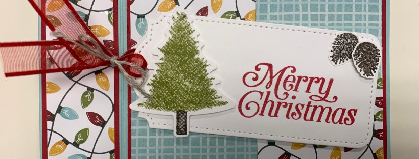After you use your Sweet Stockings DSP to make this cute Santa Paws card, use that extra DSP to make this pretty card! Order soon because this DSP is retiring soon! This card starts with an 11" x 4.25" piece of Pool Party Cardstock. I scored the card at 5.5" and 6.75". I glued down … Continue reading Merry Christmas Card