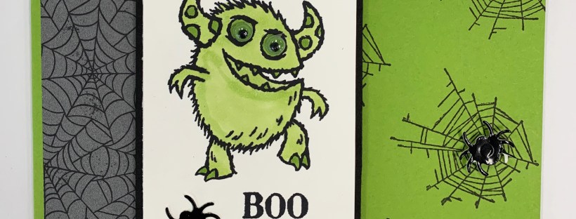 Halloween is next week! I thought I'd highlight a fun Halloween card with the super cute Boo to You Stamp Set! I began with a 11" x 4.25" piece of Granny Apple Green Cardstock for the base of this card. I used the spiderweb stamp from the Wonderfully Wicked Bundle and stamped the spiderwebs in Tuxedo Black … Continue reading Boo To You Monster Card