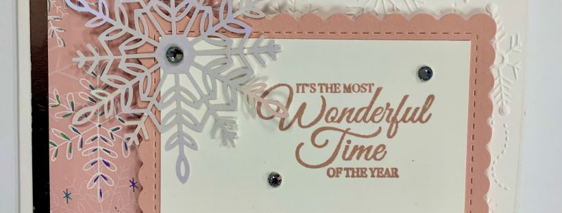 This simple card is so fun with the pops of Blushing Bride! This card starts with a 4.25" x 11" piece of Whisper White cardstock. I embossed the front of the card with my snowflake Wintry 3D Embossing Folder. I cut a strip of 4" metallic foil paper for the left of the card. Next, … Continue reading Simple Pretty in Pink Christmas Card